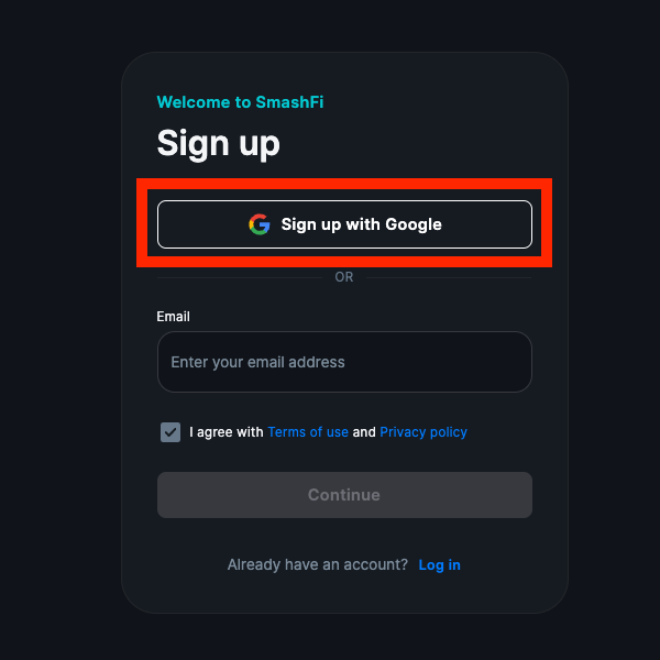 If you have a Google account, you can use SmashFi right away. You can proceed as follows: